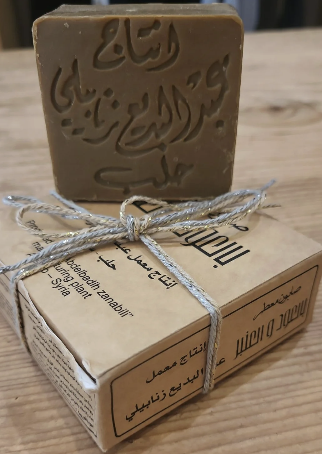 Discover the delicate luxury of Aleppo soap scented with sandalwood and amber essence, handcrafted in Syria since 1842. Enriched with 5% laurel berry oil and pure olive oil, it gently cleanses while leaving a warm, woody aroma on your skin. 100% natural, biodegradable, and infused with timeless elegance.
