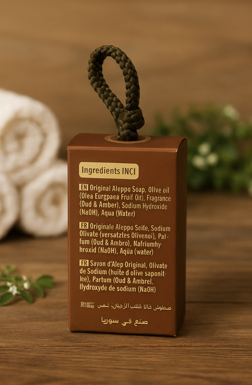 Indulge your senses with the luxurious fragrance of oud and amber, and let your skin experience the natural nourishment of Aleppo’s finest soap. Natural Aleppo Soap – Oud & Amber — pure, elegant, and timeless care for everyday luxury.